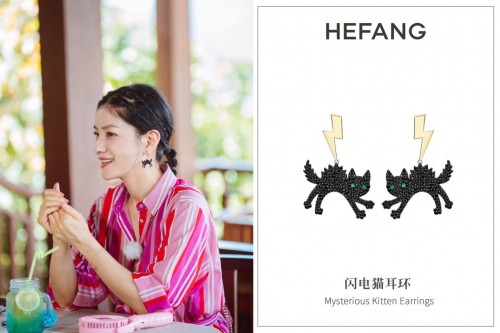 耳边炸毛HEFANG闪电猫耳环在不经意间释放出调皮信号,搭配清新活泼的粉色衬衫,是夏天的味道。
