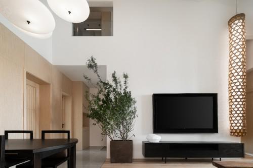 宋微建通过对朱大海一家的生活需求的分析,将客厅重新做了规划。原木风格、简约家具和绿色植物的组合,让整个空间瞬时开阔明亮起来,舒适的布局也更符合生活动线。 餐厅空间: