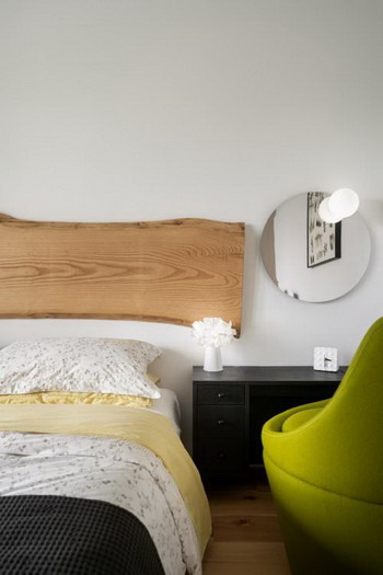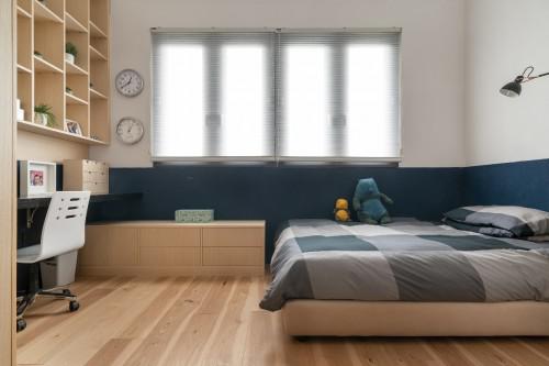 原木地板、床屏和储物柜,都给主卧增添不少自然气息。床头增设梳妆镜、吊灯和单椅,为朱大海的妻子布置出一个超实用的梳妆区。 次卧空间: