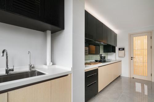 改造前:整个厨房的布局过于紧凑,橱柜台面不够高。改造后:厨房更加简约通透,布局更加合理。