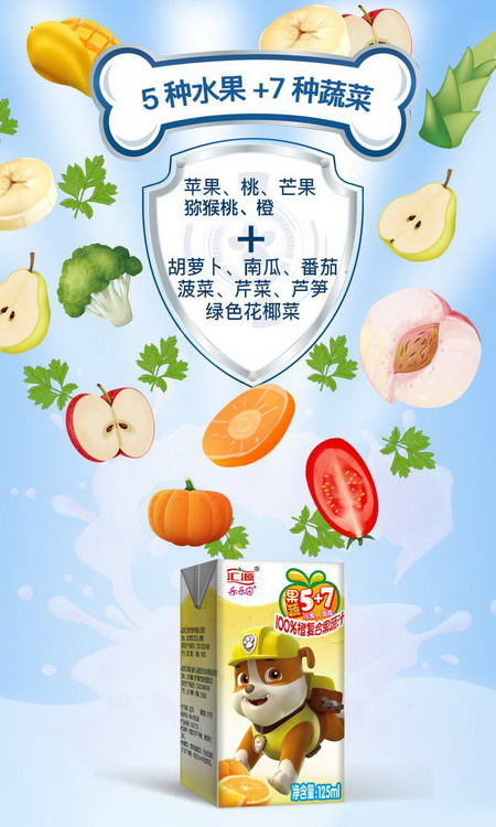 汇源100%果汁系列是汇源的王牌产品,其原料皆来自世界优质水果产地,采用无菌冷灌技术,不添加糖、色素和防腐剂,果汁含量100%,是一款天然纯正的健康果汁。汇源100%果汁包含橙、桃、葡萄、番茄、苹果等多种口味,不仅可满足不同的喜好,更可补充日常人体所需的维生素。其200ml的便携装,正适合6岁以上孩子一天的量。 针对3-6岁的儿童,则可以选择汇源100%复合果蔬汁。这款儿童专属果蔬汁精选橙、桃、苹果、猕猴桃、芒果这五种水果和番茄、绿花椰菜、胡萝卜、芦笋、菠菜、南瓜等七种蔬菜制成,富含多种膳食纤维和维生素,不添加糖、防腐剂和色素,既有助于均衡膳食又营养安全。