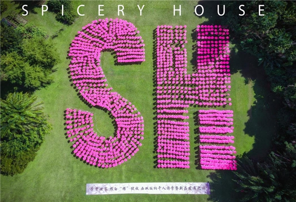 芳香家人相聚于此,手举傣伞,身着红衣,用手中的傣伞拼凑成“芳香世家”四个字,欢声笑语传遍了草坪的每一个角落。