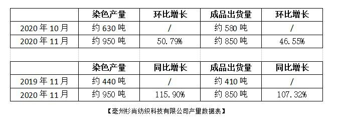 从历史数据看,香港华盛纺织旗下的亳州杉尚纺织科技有限公司2020年10月染色产量630吨左右,成品出货量580吨左右;11月染色产量950吨左右,环比增长50.79%,成品出货量850吨左右,环比增长46.55%;与去年相比,2020年11月,染色产量同比增长115.90%,成品出货量同比增长超107.32%。 据了解,亳州杉尚纺织科技有限公司于12月2日引进巨无霸12管染色机并投产,集装箱卡车、大型塔吊,染色车间现场一片忙碌,体积较大的设备在叉车推动下进入指定区域。本次安装的是巨无霸12管染色机,该先进生产设备的使用将大幅度提高生产效率,最大可一次性染色约5吨左右布料。此外缸差的降低使染色品质显著提升,为香港华盛纺织进一步加速取得更多中高端客户打下基础。产能扩大所带来的规模效应也将进一步降低单位生产成本,有利于提高市场竞争能力和盈利能力,推动业绩继续保持高速增长。