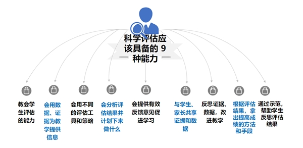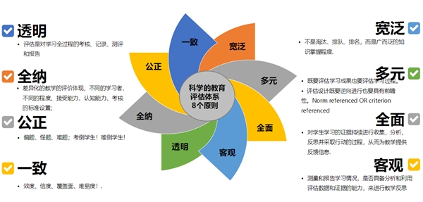 在探究式学习中,学生们会按照中黄“快普乐”课堂教学体系中的“疑”、“寻”、“示”、“悟”、“行”五大步骤,通过设疑、探疑、解疑、思疑、释疑,完成探究循环。 在探究中,首先学生们由疑发端,比如四年级学生在关于“榜样”主题的探究中,在选择自己的榜样时,孩子们产生了疑惑:“网红可以成为我们的榜样吗?”在老师的引导和帮助下,孩子们自发开展一次激烈的辩论赛。赛前孩子们自由分组、合作分工、查找资料、寻找论点论据。经过正反两方的唇枪舌战、孩子们的批判性思维越来越强,逐渐了解到要用辩证的思维去看待网红,学会选择榜样人物身上的优点,取其精华,为己所用。 全球胜任力该如何评估? 前面讲了“学什么?”和“怎么学?”,回到落脚点,我们该如何判断学生是否具备了全球胜任力?也就是我们如何设立科学的评估标准?在日常的教育教学中如何落地实施? 随着今年十月《深化新时代教育评价改革总体方案》的出台,强调破除“五唯”的顽瘴痼疾,扭转不科学的教育评价导向。我们可以看到当下教育评价改革已经具备了前瞻性的理念和明确的要求。此前,我也在行业的会议和论坛中分享过关于教育评价改革的观点和中黄综合教育评价体系的实践案例。 科学的教育评价体系我将其归纳为:“789”,即:八项原则、九种能力以及十大目的。