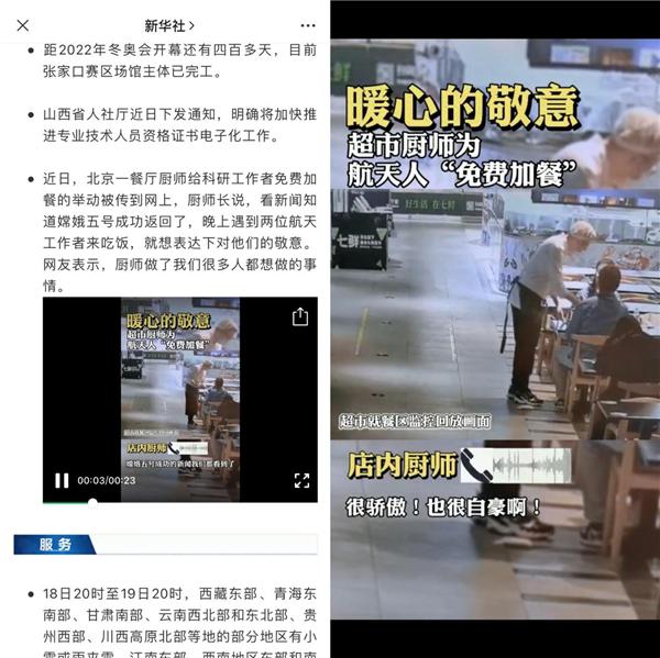 近日,嫦娥五号成功返回的新闻刷屏网络,让大众开始将目光聚焦到这群默默在背后钻研的科研工作者身上,而科研工作者的默默付出也收获了人民的尊重。近日,一则“厨师给科研工作者免费加餐”的暖心视频在网上引起了广泛传播,网友在自发转发的同事也为视频中厨师的行为点赞。 据悉,12月17日晚,七鲜广安门店临近闭店时来了两位顾客,匆忙的点了两份炒饭,送餐时工作人员关注到这两位顾客穿着中国航天的工作服。正好当天看到很多嫦娥五号成功返回的新闻,就想着对航天人表达下敬意,就炒了一盘虾送给两位航天工作人员。 据工作人员回忆“他们怎么都不肯要,是我硬要给的,就想着他们为祖国的航天事业拼搏不容易,这么晚才来吃饭,而且只是匆忙的点了一份炒饭确实很辛苦。我这盘虾不值一提,但也是表达一份心意吧”。 视频流出之后,迅速引来各大媒体的转发。很多网友看了视频后表示:他们才是全民偶像,这才是我们科研工作者该有的地位;追我们“科研工作者”这颗星不香吗?。 2020年,对于中国航天而言,绝对是难忘的一年。在这一年里,航天人历时30余年组建的北斗全球定位系统正式投入使用;中国成功发射了“天问一号”火星探测器;成功实施了探月三期嫦娥五号任务……将西方人口中的"不可能"变成了"可能"。 而在这些万众瞩目而又异常艰辛的任务背后,是我们的科研工作者、我们每个中国人的默默付出。七鲜超市工作人员的暖心敬意是无心之举,但这样的无心之举也从一个侧面反映出,当代科研工作者的社会地位与认同感正在迅速提升。正如网友所评论的“这份敬意是他们应得的”。 中国首席商业资讯门户;更多内容请关注中国商业网各频道、栏目资讯。 免责声明:凡本站注明 “来自:XXX(非中国商业网)”的新闻稿件和图片作品,系本站转载自其它媒体,转载目的在于信息传递,并不代表本站赞同其观点和对其真实性负责 。 |