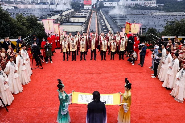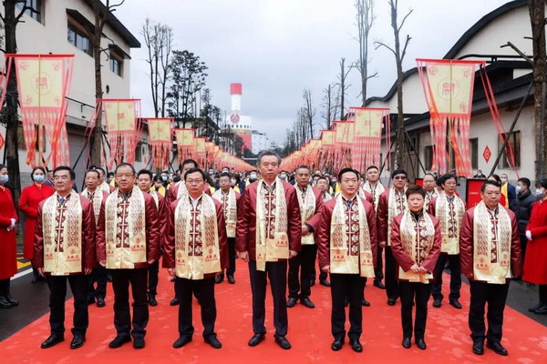 12月17日,由五粮液集团主办的第二十四届酒圣祭祀大典在中国酒都宜宾隆重举行。本次祭祀大典以“祭工匠精神”“祭历代传人”“祭酿酒历史”为核心,表达五粮液对天地万物的敬畏和对酒圣先贤的尊崇,展现出五粮液对传统酿造技艺的极致追求和千年匠心的传承,以及对世人健康与和平喜乐的祈福。
