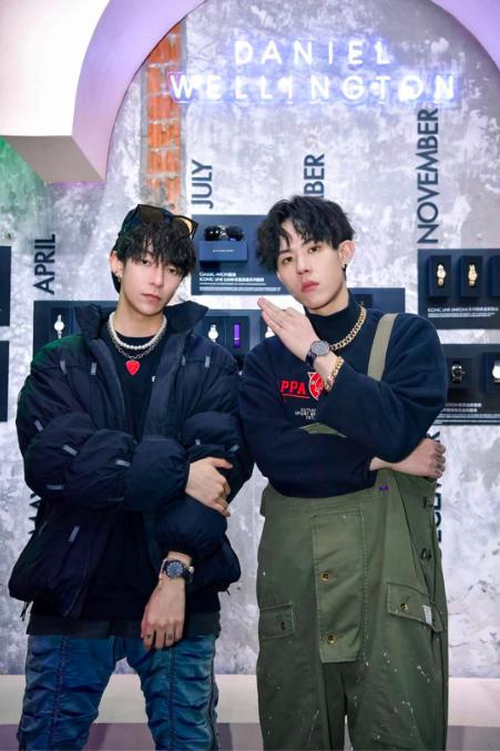 著名歌手林渝植(右)和叶子铭(左)出席DW & 和平精英合作款发布派对