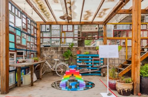 展览作品 平潭是我国第五大岛,也是一个国际旅游岛,北港文创村作为2020洛丽帕博城市艺术展分展区,分别在 石头会唱歌咖啡厅、蓝眼泪音乐广场、草坪、时光驿站 共展出五件装置作品,每件作品都传达了疫情对于广大民众的思考。 01.《biydar·觉醒》---沙克玛.热夏提