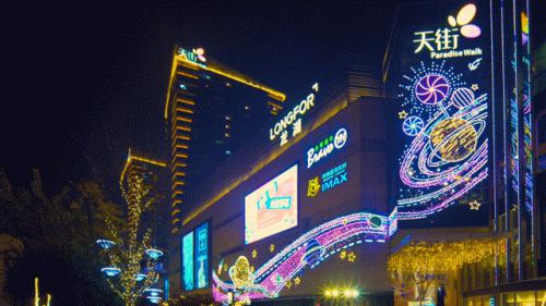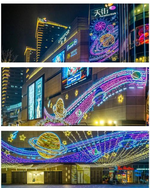 (实际效果图) 星光交错间,星河、星球、糖果元素活灵活现,天街的夜空因有这些甜美元素和跃动的色彩而更加迷人。