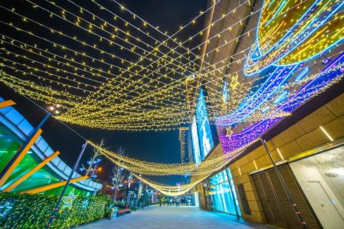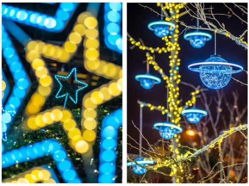 (局部细节实拍) 点点星光触手可及 2020年的双子座流星雨你或许错过,但让星光落入凡间的龙湖上海宝山天街却在这个“双旦”静候你的到来,共同开启新生活。 在此次的灯光氛围设计中,夜空彩虹以契合立面的主题灯画效果,对“糖果星球”或“星空”元素进行延伸,打造灌木、树木区域氛围效果。