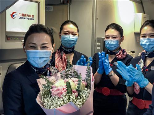 2021年3月16日,东航Mu5350航班顺利由深圳抵达上海虹桥国际机场。全部旅客下机后,驾驶舱门被打开,飞行员皮豪威走了出来,紧紧拥抱早已泪流满面的客舱经理李明华。风雨三十七载,东航客舱服务部李明华终于在这一天迎来自己职业生涯的最后一次飞行,特别幸运的是,在公司领导和同事们的关心下,这难忘的最后一飞有儿子皮豪威的全程陪伴。