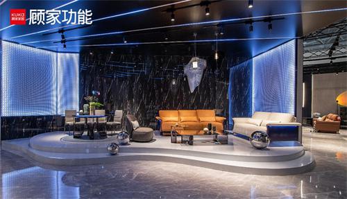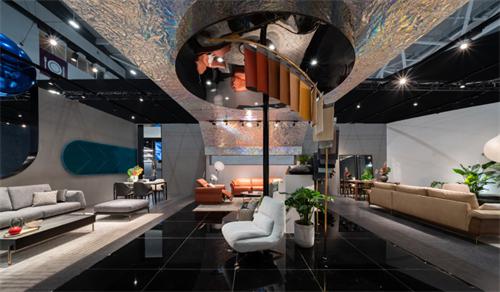 走进位于8A01的顾家布艺展厅,6米挑高的金属帘设计和蓝色星球空间,充盈着科技范的未来感与艺术范的神秘感,与时光隧道设计交相辉映,宛如迈入了未来科技人居时代的生活场景。