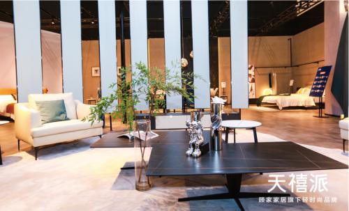 顾家家居旗下独立轻时尚品牌“天禧派”,以新姿态在8B03展区惊喜亮相,并围绕“城市中心的氧气绿洲”为核心概念打造——茂盛的绿植丛中,客餐厅、卧室、床垫、按摩椅、晾衣机、单椅及小件类全屋产品一应俱全,错落有致,营造出自然、环保、舒适的全屋家居空间。