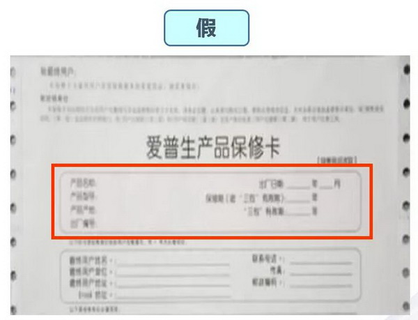 第二步:看“内在” 保修卡是维修的基本凭证,也是产品的“身份证”。一般维修需要同时出具保修卡以及发票才能享受保修服务。通过保修卡信息是否完整也能判断机器真伪正品针式打印机保修卡有机打条形码,且显示产品基本信息。假冒伪劣产品则无机打条形码,且不显示产品信息。