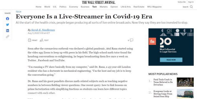 据《华尔街日报》报道,在疫情初期,很多人开始尝试在线直播,并逐渐形成了全民直播、人人皆主播的盛况。而现在,人们将越来越多的精力投入到直播。对众多的主播而言,直播已经成为了他们生活的一部分。 华尔街日报:疫情时代,人人都是主播 《华尔街日报》在文中写道,据市场研究机构国际数据公司(International Data Corp.)数据显示,2020年5月,网友在Twitch上观看流媒体直播内容的时间为17.2亿小时,比2019年12月的8.67亿小时增长了近一倍。 亚马逊旗下的Twitch、Facebook、谷歌的YouTube和Patreon的数据也表明,近几个月来,这些平台的主播都在大幅增加。目前,Twitch每月活跃主播超过400万;而Facebook新增用户数为前一年的2倍。免费的开放式广播软件目前每天约有140万用户,比3月份的约50万用户增加了近两倍。 据《华尔街日报》介绍,受美国疫情影响,摔跤比赛暂停进行。美国职业摔跤大联盟评论员A.J.Kirsch从3月份开始,每周三天都在加州伯克利的家中进行在线直播。平均每天有15到25名网友收看他的直播,并为他打赏、捐赠。Kirsch表示,他平均每个月从Twitch频道的订阅费中获得250美元左右的收入,再加上其他应用获得20至100美元的小费。Kirsch 表示:“我再也不会为每月如何付房租而失眠了。” 《华尔街日报》还介绍了许多其他的主播,比如,洛杉矶的舞者史蒂芬·格伦·迪厄(Steven Glen Dieh l)、波士顿的辛普森等等。人们在疫情期间纷纷开启了直播,进入了人人皆主播的时代。 CNBC:直播为自由职业者找到新收入 人人皆主播,这种现象不仅存在于美国,也存在于新加坡。据CNBC报道,近年来,新加坡的自由职业者一直保持较快增长,成为新加坡劳动力的重要组成部分。数据显示,2019年独立工作者占新加坡劳动力的近9%,约21.1万人,高于2016年的20万人,其中80%以上为自由职业者。 CNBC在报道中表示,2019年全球疫情爆发,新加坡自由职业者的业务大受影响。据创意工作者平台ilostmygig.sg估计,疫情的爆发让新加坡的演出活动至少减少了9000场次,收入损失超过2100万美元。 为了缓解这一影响,2020年5月,新加坡国家艺术委员会与全球视频社交平台Bigo Live合作推出了线上虚拟演唱会Livehouse,帮助新加坡的自由职业者,尤其是演艺从艺人员将线下表演过渡到在线演出。 作为新加坡的前全国选秀冠军,歌手兼词曲作者吉尔·玛丽·托马斯就是受益于Livehouse活动的一员。她表示,线下演出场所的关闭一度让她崩溃,但通过Bigo Live平台,她可以以线上直播的方式与歌迷沟通、互动,这让她对未来又充满了信心。 显然,通过线上的直播表演,获得粉丝的打赏捐赠已经成为新加坡自由职业者们获得收入的一种有效方式,也成为他们维系粉丝关系的重要平台。 新加坡Channel 8:视频社交成新加坡年轻人“刚需” 同时,据新加坡首个华语电视频道Channel 8报道,日渐兴起的网络直播正在成为新加坡年轻人交朋结友的重要渠道和方式。 据新加坡*SCAPE青年中心的一项调研表明:年轻人参与直播的主要原因是希望和社会保持联系,并跟世界各地志同道合的朋友交流。为了帮助更多年轻人学会在线直播,新加坡*SCAPE青年中心联合视频社交平台Bigo Live举办了为期十周的直播指导计划,为年轻人进行直播技能培训。 21岁的郑孜乐就是通过*SCAPE的直播指导计划开始做直播的。据了解,郑孜乐曾患有忧郁症。在接触直播之后,通过在直播中与网友的分享和交流,她结交到很多志同道合的朋友,让她的情感和压力得到抒发,并逐渐走出阴霾。现在,她越来越喜欢直播。在与家人商量后,她决定放弃大学学业,做一名全职主播,在舒缓自我情绪的同时,也可以结交到更多的好朋友,还可以帮助到别人。 而在Bigo Live平台做了三年主播的陈丽慧表示,从开始直播到现在,她已经和线上的网友建立起了深厚的友谊,直播的时候就像和朋友聊天一样,大家可以一起分享工作中的趣事和不开心的事情,也可以分享电玩游戏、音乐、烹饪等等个人兴趣、特长。兴趣相投的网友还能组成家族这样的小团体,去做一些共同感兴趣的事情。通过视频社交的形式,Bigo Live为新加坡的年轻人打造了一个全新的朋友圈和社交圈。 突如其来的疫情给视频社交的飞速发展带来了契机,而现在,以Bigo Live为代表的视频社交已经深入到世界年轻人的生活,成为他们生活中的重要组成部分。据欢聚集团2020年财报显示,BIGO旗下视频社交平台Bigo Live的平均移动端月活跃用户达2870万,同比增长24.5%;短视频平台Likee的平均移动端月活跃用户达1.201亿,同比增长4.2%。 中国首席商业资讯门户;更多内容请关注中国商业网各频道、栏目资讯。 免责声明:凡本站注明 “来自:XXX(非中国商业网)”的新闻稿件和图片作品,系本站转载自其它媒体,转载目的在于信息传递,并不代表本站赞同其观点和对其真实性负责 。 |