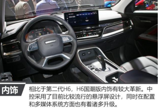 内饰点评: 对于自主品牌来说,为消费者提供丰富的舒适性配置已经不是什么新鲜事了,但哈弗H6国潮版不仅青出于蓝,更是将科技感与智能化融入了座舱中,12.3英寸超大屏幕、互联网智慧生态系统等都有搭载。