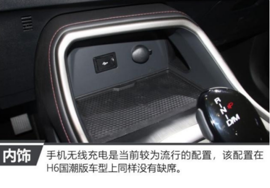 配置点评: 哈弗H6国潮版配有全景影像、全自动泊车、自动驻车、上坡辅助、陡坡缓降、全景天窗、方向盘加热、方向盘换挡、前排座椅加热、自动双温区空调、手机无线充电等功能,配置上的提升显而易见。 我个人比较喜欢的是它搭载的AQS空气质量检测、N95滤芯与负离子发生器,随时检测并净化车内空气。比如,春季的沙尘与柳絮让很多鼻炎患者饱受折磨,而这一套功能就可以将过敏以及病毒拒之车外,保障呼吸空间的清新。