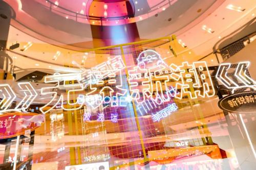 借助上海5 . 5 购物节契机, 4 . 2 3 - 5 . 5 期间上海合生汇落地了一档“ 无界新潮” 为名的主题活动, 向大众直观展示了“ 无界新店商” 的模式雏形。5 月5 日当天, 更是联同多位知名主播进行了长达1 6 小时的直播活动, 结合刚上线的上海合生汇天猫旗舰店, 该模式是由合生商业集团旗下新组建的品牌孵化团队N e o N e b 一手打造。 5 . 5 购物节期间, 上海合生汇天猫旗舰店首日开播1 小时销售额即破百万, 直播观看数量逾 3 3 万人次, 观看时长超越平均值近1 倍, 同类直播排名第一。其中, 主打潮流服饰、个性首饰的快闪店的进店转化率高达8 0 % , 几乎每位进店的消费者最终都会形成购买。很多消费者表示虽然是首次接触的品牌和产品, 但通过店内的真实触摸和上手体验, 对品牌品质有了一定的认知和了解。不少消费者更主动询问快闪店活动结束后, 可通过哪些渠道接触和购买品牌及产品, 同时, 主动提出关注线上买手店, 以期后续保持关注并复购。活动期间, 快闪店客单价平均逾千元, 最高客单价更接近二千元。参与本次活动的品牌中, 超过8 0 % 为国产新晋品牌。创新成绩可喜, 无界新店商初战告捷, 未来可期。 B1快闪店