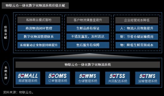 2021年的生鲜电商市场躁动不断,成了生鲜电商的IPO抢滩之年。3月18日,财联社称多点新鲜计划赴美IPO,拟募资逾5亿美元;3月31日,彭博社透露钱大妈最快在2021年内赴港上市,募资至多5亿美元;4月6日,叮咚买菜宣布完成7亿美元的D轮融资,彭博社消息其考虑最快年内赴美IPO;4月12日,IPO早知道爆料每日优鲜已向美国SEC秘密递交了招股书,IPO预计募资5至10亿美元。也有消息传出,美菜网也已开启IPO进程,计划筹资约3亿美元……各大生鲜电商纷纷抢占“生鲜电商第一股”的争夺战愈演愈烈,其背后是生鲜电商市场巨大想象空间的“诗与远方”与残酷竞争的“眼前苟且”之间的激烈碰撞。 根据欧睿数据显示,2020年生鲜零售市场规模超5万亿元,同比增速近5%,随着居民消费水平的提高,生鲜市场赛道进一步扩大。但整体来看,极光iapp数据显示2020年生鲜电商整体行业渗透率仅为8%,以生鲜刚需高频的消费特征来看,相对电子、服装等其他品类来说,生鲜电商渗透率远未达到投资人和互联网巨头的预期目标。在此背景下,生鲜电商仍然受到资本的关注;在to B、to C的赛道中,各个玩家以不同的商业模式,持续上演日趋白热化的阻击战。 然而,不论是到家模式、前置仓模式、社区拼团还是B2B供应链模式,玩家们在厮杀中早已形成共识——由于生鲜产品“易损易耗”的品类属性,“得物流者得天下”。具体来看,物流对于生鲜电商的重要性主要体现的三个方面: 其一、各类生鲜电商商业模式的最终落地,都必须依靠物流服务来实现。与传统电商一样,生鲜电商的物流与商流相互独立又高度绑定,生鲜电商订单产生后,必须由物流服务来完成最终交易,才能实现整个商业模式的闭环运转。在四类生鲜电商的商业模式中不难看出,物流服务是生鲜电商企业顺利运转的关键组成部分。 其二、生鲜电商客户满意度与物流服务高度相关,物流服务质量高低直接关系订单获取能力。为配合B端客户开市营业时间或C端消费者做饭用餐时间,生鲜电商客户往往要求货品在物流过程中保持鲜活品质,并对物流时效要求较高;物流服务质量高低关系客户口碑与复购率,深刻地影响着生鲜电商的销售额。而据北京市消费者协会2020年的调研数据显示,目前生鲜电商的物流服务仍有较大提升空间。 其三、物流服务成本以及物流综合影响下的企业成本,直接影响生鲜电商的盈利水平。新宜资本认为:不管是B端还是C端生鲜电商企业,其竞争主要集中在物流与供应链两个维度;通过成本拆解分析,优化供应链的驱动力更多来源于规模经济效应,由此可见,生鲜电商企业降本努力方向通常从物流优化着手改进。 就B2B生鲜电商模式而言,具有较为明显的三大价值优势。其一,行业价值:传统的生鲜产业流通链条长、层级多,B2B模式的出现减少了冗长繁杂的中间交易环节,缩短了生鲜供应与终端生鲜大客户之间的距离,可以有效减少产业链多层级库存、降低生鲜中转损耗;其二,客户价值:B2B模式通过整合下游生鲜大客户订单,能够集中零散需求采购优质生鲜产品,在价格上占据优势,为客户提供更为质优价廉的生鲜产品,整体服务质量也有较强保障;其三,B2B企业经营价值:B2B模式通常是与餐饮连锁、生鲜超市、生鲜卖场等大客户建立长期合作关系,相较于面向C端消费者的生鲜电商,引流获客压力相对较小。 由此可见,B2B模式有着相对较为稳定的采购源以及客户群体,想要实现B2B的长远发展,就需要特别关注物流服务质量与供应链效率的提升,以达成大客户续约,并通过良好的行业口碑来获得新的大客户订单。而从另外一个视角来解读:B2B模式的生鲜电商竞争维度集中在物流领域,面临着较大的物流服务质量提升的压力,更需要以物流为着力点不断驱动企业经营能力提高。 从行业中的案例来看,尚果汇作为一家典型的B2B生鲜电商企业,其通过集中采购优质生鲜产品,并全程把控质量标准,结合高效的仓配网络,为餐饮、零售等客户提供端到端的供应链服务。自企业成立之初,尚果汇便十分注重自身数字化物流体系建设,其选择了与物联云仓建立了合作伙伴关系。物联云仓为尚果汇提供了一体化数字化物流系统服务,帮助其搭建起了从商城管理到配送交付的全环节数字化物流管理体系,助力尚果汇B2B模式顺利落地,提升客户物流满意度,并不断驱动企业经营持续降本增效。 模式落地:从商城管理到配送交付的数字化管理,支撑生鲜电商B2B模式 物联云仓为尚果汇提供了包括50MALL商城管理系统、50OMS订单管理系统、50WMS仓储管理系统、50TSS共同配送系统、50TMS运输管理系统的一体化数字化物流系统方案,帮助尚果汇建立起从客户商城下单到最终配送交付的物流管理体系。通过物联云仓系统,尚果汇能够地有效管理起采购业务、销售业务、仓储服务、运输配送服务,实现商流与物流的完整商业闭环,实现全流程客户履约的数字化管控,将自身B2B商业模式落地运行。 借用物联云仓系统能力,尚果汇能够将生鲜产品进行集中采购管理、集中仓储管理、统一运输配送管理,获得采购价格优势以及运营成本控制优势。并且,尚果汇还以依托物联云仓系统全链条的采购、仓储、销售数据不断引导B2B模式的执行细节持续优化,进而帮助尚果汇充分发挥B2B模式生鲜供应链的规模效应优势,驱动企业效能持续提升。 客户价值:订单履约过程全环节协同作业,提升客户满意度 