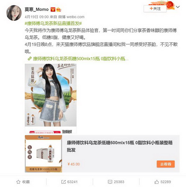我们常认为,消费者在选购一款产品时,第一诉求是功能层面的,第二是情感层面的。于品牌而言,想要做出差异化,就得学会满足消费者的情感诉求,如此才能更准确地抓住他们的心。正如即饮茶市场近年来的转变——随着健康大潮席卷年轻人的世界,如何拥有健康美好的生活逐步成为了年轻消费者的核心情感诉求,大健康概念也成为主流消费趋势。 越来越多的年轻消费者在注重口感的同时,希望通过饮食达到健康目的,也更关注食品饮料的成分,特别是饮料当中的糖分占比。因而低糖饮料渐成市场新宠,而在后疫情时代,90后茶饮用户比整体饮料用户更关注健康,对于低糖0脂茶饮的购买意愿也更加强烈。 作为茶饮市场的引领者,康师傅饮品显然是捕捉到了这一新趋势,为了满足年轻消费者日渐强烈的低糖低脂以及多口味需求,近日,康师傅饮品全新推出康师傅乌龙茶和康师傅蜜桃乌龙茶,以“最强兄弟”联手出击,再次发力乌龙茶品类市场,为消费者带来好口味的同时,更带来健康收益。与此同时,康师傅乌龙茶和康师傅蜜桃乌龙茶更官宣新生代年轻偶像SNH48莫寒、段艺璇、张雨鑫为新品体验官,在年轻圈层得到极大曝光的同时,更通过直播活动,将新品上市信息强势扩散,进一步助推新品销量一路走高。 产品力再升级 新品茶香味醇更健康 乌龙茶新品之所以在市场端引起如此强烈的反响,除了康师傅饮品的背书和流量明星的加持,更得益于其在产品品质上的不断打磨,带来产品力的再次升级。 全新上市的康师傅乌龙茶甄选闽北岩韵大红袍作为茶叶原料,以岩茶“重味以求香”,带来浓郁持久、岩韵悠扬的口感的同时,更以低糖0脂配方带来回味甘甜,并采用半发酵慢烘焙的制茶工艺和碱萃技术,释放乌龙茶独特香韵,更带来柔润舒畅的功效。全新康师傅乌龙茶真正做到了口味与健康兼顾,低糖0脂的同时,保持茶香味醇的品饮体验,以强大产品力,传递“真是好茶韵”的品牌精神。 康师傅蜜桃乌龙茶以闽南乌龙茶叶,成全茶香醇厚、韵味悠长的“茶香味醇”口感,并精选自然鲜甜蜜桃,带来滋味鲜醇、桃香浓郁的“果香颜韵”体验。工艺上则采用专利果萃技术,让茶果自然相融,桃清甜、茶醇厚,味道恰到好处,醇香怡神的同时更清润身心。其黄金果茶比例,更为消费者带来“一口桃桃好茶韵”的绝佳口味,令其在果味茶饮中拥有显著的产品力优势。 茶饮市场的消费趋势永远是年轻的、潮流的和健康的,新品是否能成功核心取决于展现出的产品力是否顺应目标消费市场趋势。这一次的康师傅乌龙茶新品,不仅从产品层面最大限度地满足年轻消费者的需求变化,更进一步优化了产品风味,匠心独蕴又能准确切中年轻人的喜好,这正是其之所以能成为中国茶饮市场的开拓者和领路人的原因所在。 营销再升级 明星同款引爆消费热情 近几年,“明星同款”在年轻消费群体中极具号召力,这一现象的背后,体现的是年轻圈层消费方式由理性向感性转变的当下,明星聚集流量并变现的能力。这一次,康师傅乌龙茶新品选择与来自国内最大女子偶像团体SNH48的莫寒、段艺璇、张雨鑫合作,正是基于她们所具备的超强带货能力的考量——与传统明星不同,其拥有极强的粉丝变现能力,堪称“粉丝经济”的典范,在品牌合作的配合度、内容传播、扩散层面具有先天优势。 SNH48从建立之初就以独树一帜的音乐风格,以及青春正能量的团体形象而迅速俘获众多粉丝的欢心,不仅与康师傅乌龙茶新品年轻潮流的品牌调性非常贴合,且粉丝以年轻人为主,这与康师傅乌龙茶新品的目标群体有着极高的重合度。这其中,莫寒、段艺璇、张雨鑫这几位成员在音乐等领域都各有表现,也就大大扩大了此次新品传播所能覆盖到的受众群体。 事实证明,在微博,光是#康师傅乌龙茶新品直播首发#这条话题的传播声量,就达到了千万级,大大提高了两款新品在社交媒体平台的曝光度。明星精准流量的加持当然是第一步,随后康师傅饮品通过官方旗舰店直播间推出明星直播活动,粉丝们响应号召,积极get偶像同款,并自发在微博超话晒单,近一步扩大了新品的声量,在全网迅速掀起一波消费热潮,通过网红生态结合生意,成功促成“流量”转“销量”。 总结 随着Z世代用户追求个性与时尚、精神与物质需求双重满足的愿望更加强烈,他们渴望找到新的自我表达载体。这种表达载体往往源于对艺人、内容、文化等元素的喜爱,进而被种草产品,产生新的消费。这也是康师傅乌龙茶和康师傅蜜桃乌龙茶之所以能在上市初期,便快速获得大量年轻消费者关注的原因。 综观此次新品上市,在产品力的塑造上,康师傅乌龙茶和蜜桃乌龙茶极大满足年轻消费者健康+好喝的消费需求,获得价值认同,迅速抢占乌龙茶品类高地;在品牌的传播上,选择与其调性相合的年轻艺人合作,进一步垂直化、圈层化地渗透年轻消费者;在销售的转化上,通过明星直播活动,获取精准流量,并成功转化成销量实绩。 在圈层文化兴起、注意力逐渐分散的当下,对于众多快消品牌来说,唯有始终与年轻人站在同一阵营,并不断创造新的火花,持续释放年轻力量,才能像康师傅饮品一样,收获声量和销量的同时,反哺品牌力的长线打造。 中国首席商业资讯门户;更多内容请关注中国商业网各频道、栏目资讯。 免责声明:凡本站注明 “来自:XXX(非中国商业网)”的新闻稿件和图片