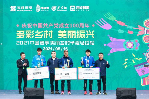 经过两个多小时的激烈角逐,最终,王连正获得男子半程马拉松项目中的冠军,成绩为1小时06分13秒,第二、三名分别是黄家宜和张超;姜莎莎获得女子半程马拉松项目中的冠军,成绩为1小时21分20秒,第二、三名分别是朱艳红和李鹏敏。在颁奖仪式结束后,王连正和姜莎莎在现场各自认领了海水稻一分田作为冠军奖励,待秋收之时,即可收获独属于自己的“胜利果实”。