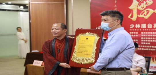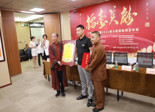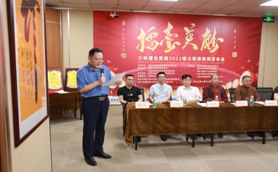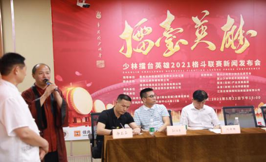 《少林文化》月刊总编 明哲报道 “百年华诞,少林巨献”,弘扬中华武术和少林寺禅武文化,助力“中华文化伟大复兴的中国梦”,少林《擂台英雄》2021全国格斗联赛新闻发布会于5月22日下午在嵩山少林寺少林文化研究会深圳总会隆重召开。少林寺第33代禅师、嵩山少林寺少林文化研究会总会长释永圣,嵩山少林寺少林文化研究会总务会长、嵩山少林寺武术训练基地院长释延凌大师,深圳市社会组织总会会长孙文平,中国互联网网络营销教父、ICP经济模型创始人、嵩山少林寺少林文化研究会执行会长赵旭,大旗音乐集团董事长卞凤芸,辽宁省人民政府驻深圳办事处主任刘希国,“国际武术文化传播大使”、深圳尚杰搏击俱乐部创始人罗方升,深圳三虎传媒总裁、少林擂台英雄全国格斗联赛组委会执行主席张健勇,江苏无锡银翔新能源科技集团董事长、少林擂台英雄组委会名誉主席朱银春,深圳市科技经济促进会会长戴铧、执行会长陈诗雨,国实屹达(北京)供应链股份有限公司总裁李张喜,少林禅宗书画院副院长陈哲明,广东拾旅集团上市部总经理陈武星,广东芝中皇生物科技公司董事长郑虹等赞助本次赛事的企业家代表近百人和30多家国内主流媒体出席了本次发布会,嵩山少林寺少林文化研究会会长助理胡淑泽主持了本次新闻发布会。