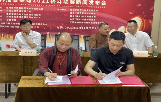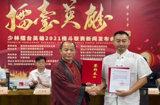 释永圣大师现场致辞 据了解,少林擂台英雄全国格斗联赛组委会特邀嵩山少林寺第33代禅师、嵩山少林寺少林文化研究会总会长释永圣担任少林擂台英雄全国格斗联赛的总顾问,特邀释延凌大师担任大赛的武术顾问。释永圣大师是少林寺禅宗代表人物,国礼书法家,其书法作品多次作为国礼赠送给30多个国家元首,具有广泛的国际影响力,2021年3月,释永圣“少林禅宗书法”被列入世界非物质文化遗产,成为中国首位入选世界非遗的国礼书法家。 少林擂台英雄全国格斗联赛组委会执行执行张健勇介绍了赛事海选晋级决赛制度,每年举办十场比赛,全国巡回赛制,每个月两场比赛的频率从海选、晋级、决赛持续到年底。2021年5月29日-30日,首场比赛将在中国惠州佳兆业仲恺体育馆举行。随后大赛摆擂深圳、浙江、福建等地巡回比赛,2021年度冠军总决赛金腰带争夺战将会师中国嵩山少林寺,为全球观众奉献中华武术和少林功夫的年度盛宴。 据悉,深圳三虎传媒有限公司近六年举办了超过百场职业格斗比赛,有丰富体育赛事组织经验,深圳市尚杰文化发展有限公司承办本次赛事,江苏无锡银翔科技新能源公司、深圳大旗音乐集团、趣拍拍、论酒江湖、少林禅鞋、华翼视线等近千家新闻媒体,单场赛事的现场直播收看人数将超过1亿人,具有极大的国际影响力。