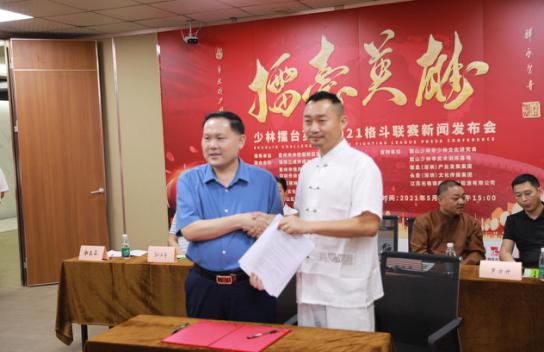 少林擂台英雄组委会执行主席张健勇与国实屹达总裁李张喜签约仪式
