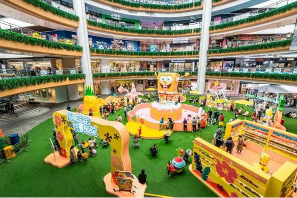 楼顶和大厅的巨型海绵宝宝造型,章鱼哥、海盗船、蟹老板等经典动漫人物搭配,使消费者仿佛进入了海绵宝宝的世界。沙堡大战、派大星寻宝记、入侵菠萝屋、Spongebob 2021号奇幻转转乐、Spongebob春夏野餐会、周边快闪店等互动式体验设计,让众多消费者实现了与经典动漫形象零距离接触、互动的愿望。