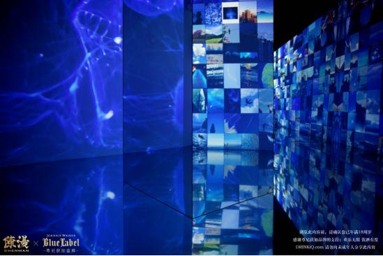 浏览此内容前,请确认您已年满十八周岁。 (2021年7月9日,上海)2021年7月9日,著名苏格兰威士忌品牌尊尼获加蓝牌携手知名摄影师陈漫,在聚集当代艺术和潮流的社交空间——TX淮海|年轻力中心正式开启了一场震撼的蓝色沉浸式交互展览。陈漫作为此次展览的策展人及视觉艺术总监,打破了感官的界限,扩展了“蓝”的维度与涵义,将关于蓝色深度的摄影作品与新媒体艺术相结合,综合了影像、雕塑、装置等多种表达形式,带给了观者一场别开生面的沉浸式交互艺术展览。