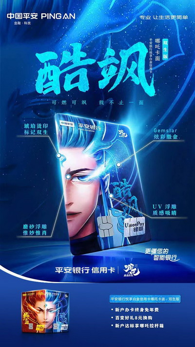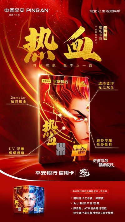 8月8日,平安银行哪吒主题卡面再上新——以哪吒和敖丙“双生一体”为灵感的双生版,包括借记卡与信用卡,用户可选择申办双卡。这是平安银行信用卡在联动魔童哪吒IP在“全城天天88”活动期间推出的第三套卡面设计,完美诠释当下年轻人“年轻不设限,我不止一面”的人生态度,为喜欢国潮国漫、“颜控”属性的年轻人群带来又一新选择。 平安银行哪吒主题卡面-双生版,将哪吒和敖丙“双生一体”的形象融入卡面设计,红蓝色调形成强烈对比,尽显各自高燃姿态。其中,红色是不信命中注定的哪吒“热血”借记卡,蓝色是为正义而舍身的敖丙“酷飒”信用卡,消费者可选择申办双卡,享受平安银行一站式的金融服务。 两张卡面不仅炫酷大气,更在细节之处彰显匠心工艺。眼睛之处,以绚丽的撒金工艺绽放“睛”彩,刷卡时还可触发哪吒和敖丙的双眼闪光动效,给年轻人带来潮酷持卡体验;额头之处,以琥珀烫印工艺标记双生,成为双生版的专属标识;头发眉眼之处,采用磨砂浮雕,人物边缘则以UV浮雕勾勒,呈现出立体效果,尽显哪吒和敖丙热血炫酷的风格。 在产品权益方面,申请平安银行悦享白金信用卡哪吒卡面-双生版的持卡人,可享“百变好礼8元换购”权益。消费达标即可从视频娱乐、音频娱乐、餐饮美食、运动健身四大类近20项好礼中自由组合,每月最高可享2次,首年最高可享24次。2021年年底前核卡新户,可享受终身免年费政策。同时,全城天天88活动期间新客户完成任务,新户礼可选哪吒定制拉杆箱。 早在“全城天天88”活动开启之际,平安银行已推出两款哪吒主题卡面设计,分别为LED亮灯初心/觉醒版、贝壳面潮玩版。上线短短7天,平安银行悦享白金信用卡哪吒卡面的累计发卡量已突破10万张。随着全新卡面双生版的上线,国潮国漫爱好者尤其是哪吒粉丝们将拥有更多选择,相信也将再次掀起国潮开卡热潮。 8月8日恰逢全城天天88活动期间的第二个主题燃动日“嗨购燃动日”,除了推出哪吒主题全新卡面,在线上,平安银行信用卡联手罗永浩“交个朋友”抖音直播间,为持卡用户专场派发135万抖音支付券,平安银行哪吒主题卡面-双生版也同时登陆直播间;在线下,平安银行信用卡在北京、杭州、深圳等城市举办线下商圈主题路演,以“国潮平安城”等快闪店与大众一同燃动,同时联合商圈合作品牌商户持续奉上优惠福利。接下来,平安银行信用卡还将陆续开启不同主题的“逢8全民燃动日”,让消费者持续畅享“全城天天88”金融国潮消费新体验! 中国首席商业资讯门户;更多内容请关注中国商业网各频道、栏目资讯。 免责声明:凡本站注明 “来自:XXX(非中国商业网)”的新闻稿件和图片作品,系本站转载自其它媒体,转载目的在于信息传递,并不代表本站赞同其观点和对其真实性负责 。 |