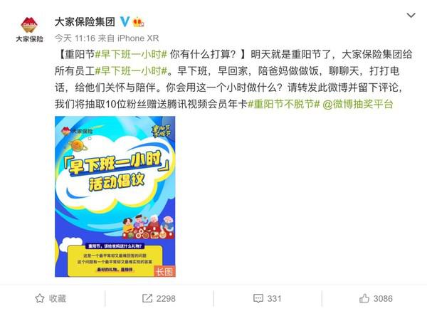 2021年10月14日是重阳节,大家保险集团围绕“重阳节,不脱节”的主题,通过“线上+线下”相结合的形式,开展系列孝亲敬老公益活动。同时,大家保险在重阳节期间联合多家企业发起“早下班一小时”倡议,提倡职场人早点下班,陪伴至亲。 此次系列活动旨在强调家庭陪伴和社会价值对老年人的重要性,引导年轻一代给予老年人更多的关注和陪伴,让老年人不与不与社会脱节,让年轻人不与家人脱节。 由大家保险集团发起的“早下班一小时”倡议,得到了汇源集团、万和电气、华图教育、光明网等众多企业与媒体的广泛响应和支持。倡导年轻人早下班、早回家,更多一点时间陪伴家中老人,提出不让加班和智能电子产品成为沟通的屏障,让老人真正实现过节不“脱节”。在“早下班一小时”的活动倡议书中,大家保险还贴心提供“回家过节指南”。该倡议一经发起,诸多企业点赞支持,在网络上更是引发了网友的共鸣与热议。 重阳节期间,大家保险将推出独家视频创意片《暗号》,视频展现了当代老年人并不甘于做网络的“数字遗民”,他们努力在传统与流行中不断学习进步成长,与年轻人握手拥抱。同时,也激活了社会大众关于“代际交融”的深刻思考,激发更多年轻人的反哺责任。 大家保险还联合中华慈善总会、专业老年服务机构等走进社区,开展陪伴类的长者志愿服务。活动以入户关爱为形式,走进社区,走进老者家中,向长者提供包括一次聊天、一个拥抱,一次理发(或剪一次指甲)、一个新技能、一个微笑在内的“五个一”服务,帮助他们更好地融入社会,更积极地看待老年生活。 重阳节在古代为祭祖节,近代才因寓意“九九长寿”与老年人日渐关联,并开始被定义为老年节。大家保险因责任而生,以保险为主业,以养老为战略突破口,围绕“一老一小”人群,开展了“大家梦想课堂”“倾听者”公益计划以及其他丰富多样的公益活动,关注长者和孩子们在精神层面的生活体验。桑榆不晚,为霞满天。大家保险将继续坚定立足保险本源,深耕养老领域,服务大家百岁人生,守护大家美好生活。 中国首席商业资讯门户;更多内容请关注中国商业网各频道、栏目资讯。 免责声明:凡本站注明 “来自:XXX(非中国商业网)”的新闻稿件和图片作品,系本站转载自其它媒体,转载目的在于信息传递,并不代表本站赞同其观点和对其真实性负责 。 |