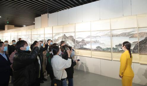 展览现场 漫步在180米长的水墨长卷面前,一览祖国绵延万里的边关胜景,在场观众无不为之震撼,画面集传统手法与现代意识于一炉,对涉及山水、人物、风情的描绘,力求达到形神兼备,采取散点透视的方法,从而给了观众一个全新的视觉体验,犹如身临其境地饱览了边关部队的生活,以及祖国大好河山的风情风貌。不少观众驻足浏览久久不忍离开,他们纷纷拿起手机拍照分享朋友圈、发表小视频,纪录这一刻难忘的瞬间。