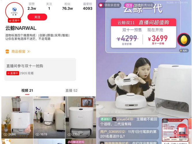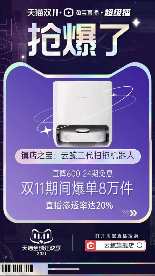 对技术与供应链要求极高的消费科技领域中,创新有时并非易事。 与大疆“师出同门”的云鲸,在已经杀成红海的清洁机器人赛道,以后来者姿态成为行业黑马。 2016年成立,5年后就以17.13%的市占率排名行业第二。今年双11,云鲸在开门红全天完成去年同期150倍销售额。如果按照这个发展趋势,云鲸预计会在2023年位列第一。 不过,增长迅猛的云鲸,有与之爆发速度不符的“慢”动作。当竞争对手不断迭代新产品时,云鲸5年里只推出了2款扫拖机器人,但因为让传统的“半自动”扫拖机真正实现了“全自动”,它们双双成为超级爆款。2019年双11,耗时三年研发的扫拖机器人J1一经发布,就长期稳居扫拖机器人单品销售冠军。今年9月底发布的新品J2,目前已经月销7万多。 作为一个消费电子行业的新品牌,云鲸今年9月顺应平台商家自播的大潮,开始建立自播团队的动作。它的自播间相当特殊。当绝大部分品牌都在直播间里挂上尽可能多宝贝链接时,它的直播间里,常年只挂着一个商品链接,少数时间,扫拖机底下才会附带清洁剂等耗材。 从今年9月云鲸自建直播团队以来,自播已经为其天猫旗舰店贡献了15%成交额,直播间粉丝累计达到73W。除了做好产品和站外引流的基本动作,复盘云鲸团队的直播动作,我们发现,它做对了以下几点: -形成“品牌自播+达人直播+天猫官方直播”的直播矩阵,公域作为营销场进行声量曝光,私域承接流量进行更高转化; -品牌自播间作为内容的一部分,主播每次只围绕一件商品进行详细卖点讲解,展示拖洗前后对比,用最直观的效果降低消费者的决策成本; -顺应平台政策变化,与平台共振。在商家自播成为大潮时,及时将直播间的内容标记为“看点”,制成讲解商品的短视频切片,获取更多公域流量的曝光。 01 以差异化卖点杀入红海的“慢”品牌 懒宅经济捧红了扫地机器人等解放双手的新消费品。奥维云网数据显示,扫地机器人的销量从2013年开始大幅增长,截止2020年末,年销量已经达到94亿元,零售量也达到了654万台。 但这个赛道中,已经盘踞众多国内外竞争者,国内有科沃斯,浦桑尼克、海尔、小米、石头、追觅和哇力等厂商,国外有iRobot、戴森、NEATO和Uoni由利等企业,各大品牌覆盖从1000元至15000元价格带。 作为一个新品牌走进消费市场时,云鲸需要在消费者面前混个脸熟,也需要让消费者在一众清洁机器人当中记住自己。看起来密不透风的市场中,它发现了一个利基:传统的扫拖一体机,需要手动更换和清洗拖布,而且只能擦拭地表的浮灰,没法清洁顽固污渍,拖扫同一路径的模式,会二次污染地面。 解决了老问题,但带来更多新问题的扫拖机,都处于“半自动”状态。没有真正实现“懒人”们的需求,反而让消费者对它有了负面观感。 云鲸没有走“价格屠夫”的性价比之路,而是牢牢抓住这些痛点做研发。它在公司成立后5年间推出的2款扫拖机器人,都围绕着“全自动”一个点展开。 云鲸2019年双11正式向市场推出的J1,成了全球首款不需洗拖的洗拖机器人,名利双收:不光拿下爱迪生发明奖金奖,红点奖,CES创新大奖,德国创新奖等国际大奖,还在今年618创下了开售9分钟销售破亿的成绩。时隔两年,云鲸又在原有产品基础上,发布了第二款商品,拥有自动上下水、自动添加清洁液等功能的扫拖机器人J2。 云鲸走了一条少有人走的路。消费者教育成了摆在前面的障碍。目前,国内外扫拖机品牌更多集中在算法、避障、自动集尘等方面的的技术开发,较少开发自动上下水功能。因为自动上下水功能除了考验硬件结构及水路、电路安全之外,还涉及到用户安装难题,更考验品牌服务。 02 内容降低决策难度 今年天猫将新客增长作为消费电子行业的重点。但因为高客单价、低复购的特点,消费电子的决策周期很长,更需要依靠内容打消消费者的顾虑,降低他们的决策门槛。 尤其是主打差异化卖点的云鲸,需要改变以往消费者对扫拖机的“刻板印象”,重新教育市场。 云鲸的消费者画像,并不是一群热衷黑科技的男生们,而是生活在北上广等一线城市的26-40岁女性。因此,云鲸在进行全域种草营销时,并不强调技术参数或科技智能,而是更倾向于强调一种生活方式。它的站外种草视频,大多拥有TVC广告片的质感,而且铺遍了电梯广告、刘涛和300多个达人的社交媒体账号中。 从差异化的卖点切入,云鲸也在直播间里实现了差异化: 早期在李佳琦、雪梨和刘涛的聚划算直播间里打出名声的云鲸,今年9月开启自播后,已经形成达人直播爆发声量+品牌自播细化产品卖点描述的联动效应。 几乎所有品牌在进入头部达人直播间时,往往只有3-5分钟的展示时长。低客单价的美妆、食品或服装,决策链路短,很容易在当下就击中消费者的心,而高客单价的消费电子产品,功能与卖点也相对较复杂,很难在短时间内推动销售。 对云鲸来说,达人直播间是一个营销场,而品牌自播间更像是一个科普阵地。双11前,云鲸每天开播,还将直播时间拉长,分为“日场”与“夜场”:日场从早上9点到中午12点半,“夜场”则从下午5点一直持续到0点。 只挂了一个链接的直播间里,不管消费者什么时候进入直播间,都能看到主播在围绕云鲸的爆品小白鲸“无死角”介绍:他会扮演一个真实消费者的角色,强调洗拖前后的变化,也会展示自动清洗拖布的前后对比。这种相当直观的“before&after”展示,让消费者有了场