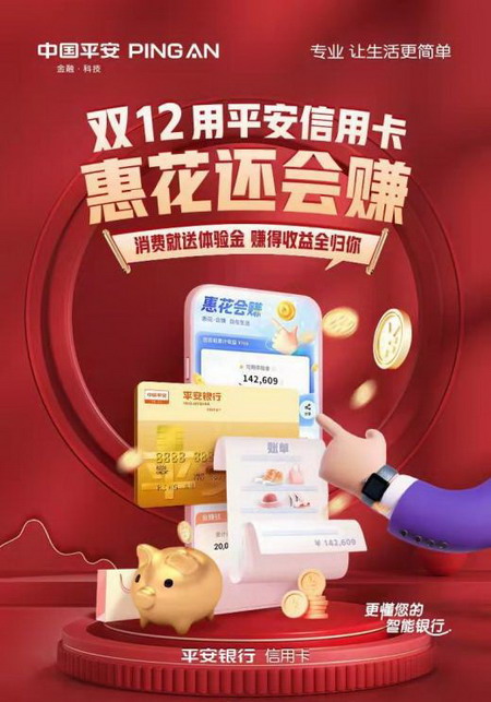 一转眼,2021年已经接近尾声,今年你收获如何? 临近年底,很多用户都会买买买犒劳一下辛苦了一年的自己,各大电商也抓住时机推出了“双12”购物狂欢节,一年一度的买买买盛宴,你准备好买什么了吗? 现在各大电商的优惠规则很复杂,算得头疼。有的时候感觉即使自己高等数学不挂科,也算不过商家的烧脑优惠。一顿操作猛如虎,一看便宜两块五,太难了。 其实,这些烧脑的规则太复杂,只需要在支付环节选对信用卡,就能轻松省下来更多钱。毕竟这个简单,大家都能闭眼抄作业。 到了支付环节,大家闭眼选择平安信用卡刷卡消费就可以了。 一方面,平安信用卡全网计积分,放心刷。 另一方面,今年双12平安信用卡覆盖京东/京喜、天猫/淘宝、抖音等平台,都有力度不错的优惠,比如京喜满500立减120元,可比电商平台烧脑的优惠计算容易多了。 并且,除了积分和优惠,现在还有惠花会赚1:1返体验金、月月领还款券、月月狂欢8、笔笔抽积分、账单分期四折起等活动可以叠加,简直不要太贴心。 双12期间活动很多,我们一个一个说。 天猫满100减10 在天猫购物,刷平安信用卡有机会享受满减优惠。 2021年12月9日至12月31日期间,在天猫淘宝购物使用支付宝支付并选择平安信用卡,单笔实付金额满100元有机会享立减10元优惠,单笔最高立减10元。活动期间每户限享1次优惠。每日立减名额有限,先到先得。 100块还不简单吗?随便买点啥都可以,你懂的。