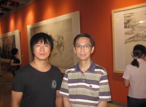 (杨建军与何家英合影) 2015年4月现代工笔画院进行“首届研修班”招生。该画院是唯一一个国家级工笔画最高学府。由中国艺术研究院博士生导师、中国美术家协会副主席何家英担任院长,首届开班后,全国报名人数不下于三五千,最终录取人物不过百人,花鸟山水班更是只招20人,杨建军是唯一一位山水画家。