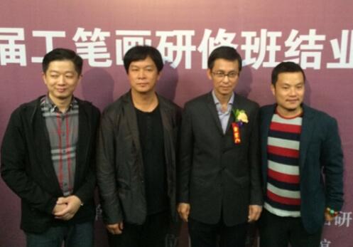 (首届工笔画研修班结业,左二杨建军,左三何家英) 现代工笔画院——唯一国家级工笔画最高学府,能被选入现代工笔画院进修的学员都代表着各自领域的超高水准。其中,现代工笔画院院长王天胜主导的精英班2011年开班,筛选机制更是极为严苛。全国有官方记录的工笔画家十几万人,经过层层筛选,最终需要通过写生考试,要求之高,宁少毋滥,杨建军是唯一达到标准的山水画家。