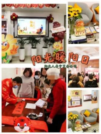 阳光人寿全面升级柜面服务体系,为老年客户的临柜业务办理开通绿色服务通道或专属服务窗口,配置耐心专业的咨询引导人员,全程指引,优先办理,减少老年客户等待时间,提供高效、无障碍的保险服务。 同时,在全国各网点设置“敬老区”,配备爱心座椅、老花镜、轮椅和急救药品等标准化服务设施,同时还配备了业务流程指引操作手册,让老年客户对业务办理流程一目了然,便捷服务更暖心。 亮点三:阳光暖阳日,让服务更安心 阳光人寿自2022年起,将每月19日定为“阳光暖阳日”,通过线上线下相结合,为老年人提供生活服务、在线问诊、健康管理、金融宣教等服务,帮助老年人了解新事物、体验新科技,做好健康管理,为老年人的晚年生活增添色彩。 线上,阳光人寿持续优化老年人线上服务体验,以老年人电话直通、“关爱版”APP、“在线客服”悬浮按钮等方式,提升老年人线上使用的便捷性。同时,通过“阳光人寿”官微开展老年客户健康大转盘和健康养生知识活动,增强老年人的参与感。线下,全国各机构纷纷以“阳光暖阳日”为契机,开展关爱乡村老人、健康讲座、文化娱乐等形式多样的关爱老年人活动。