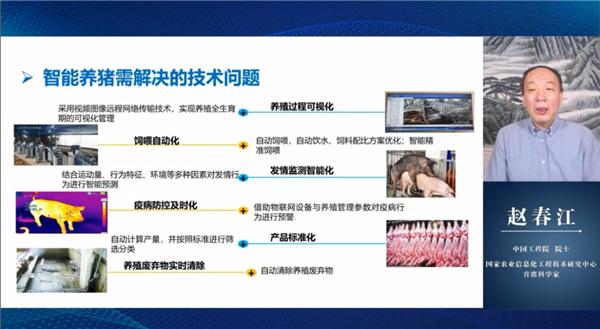 农业农村部信息中心主任王小兵 王小兵主任进行了《数字技术驱动引领乡村振兴》的专题报告分享,从农业的数字化再到畜牧智慧养殖,数字化是基础,网络化是载体,智能化是目标。要加强智能装备、物联网传感器芯片等核心关键技术攻关,切实解决卡脖子问题。中国工程院院士、国家农业信息化工程技术研究中心首席科学家赵春江在《数字技术在生猪养殖上的应用》专题报告中提出了生猪产业健康持续高效发展的关键因素和养殖方法,满满的干货,为广大猪友上了一堂学习成长、总结思考的精彩课。