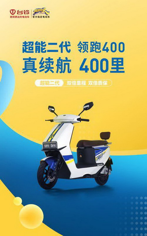 台铃超能二代跑男家族 又被angelababy宠信啦! 这次获得angelababy赞赏的 正是我们的超能二代领跑400 台铃家族的长跑健将 不得不感叹 领跑400的镜头感真的十足 妥妥电动车届的颜值担当! 看到angelababy和领跑400站在一起 铃铃子秒变星星眼小迷妹 毕竟美女+帅车的组合 谁看了不爱呢 酷炫外观小铃铛们已经get到了 接下来铃铃子就来为大家介绍一下 领跑400深藏不露的优秀内涵吧 真续航 看得见 公证处见证实测满电续航超400里 骑它送外卖一整天 毫不担心中途没电 远距离通勤人员的不二选择 真性能,硬实力 搭载国家专利省电技术 云动力4.0省电系统 十项省电科技升级 整车综合性能提升约97% 外加1200W超强电机 动力强劲,轻松应对陡坡等路面 大座桶真能装 35L超大座桶 轻松装下三个头盔和一组充电器 出门郊游一次装个够 再也不用怕东西装不下了