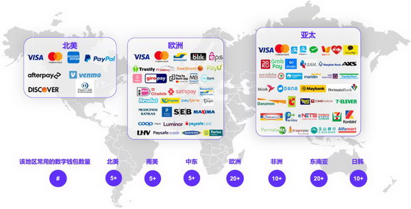 当消费者点击付款后,承载资金流转的收单环节会经历「收到支付请求 ➡ 通过风险筛查 ➡ 通过验证 ➡ 授权 ➡ 请款」最终完成支付流程。 1 收到支付请求 在收单第一步,需要最大化提升消费者购买意愿。订单流失的原因有很多比如额外成本过高、需要额外注册、不支持偏好货币、对网站缺乏信任、支付方式不足等,卖家需要最小化支付操作繁琐的影响,提升消费者购买意愿。 ● 支持本地支付方式: 世界各地消费者对数字钱包的使用多样且分散,最大化支持当地主流支付方式,确保客户能用最习惯的支付方式完成交易。 当然如此庞大的本地支付方式,如果不使用第三方支付平台而选择与每家本地支付方式单独签约,在效率及价格上都优势不足。Airwallex空中云汇资金能力遍布全球,可以帮助商户对接遍布全球的71个本地支付方式,在欧洲、东南亚等地区深度本地化,商户可轻松开通匹配自己的支付方式。
