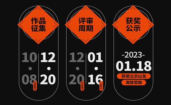 比赛时间 2022.10.08至2022.12.20结束 评审时间 2022.12.20至2023.01.16结束 颁奖日 2023.01.18