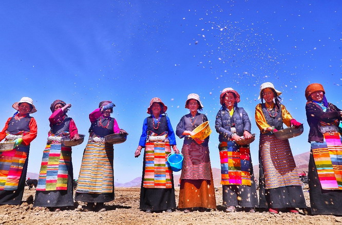 村民在自然堂公益草场播种绿麦草 10月28日,自然堂视频号、伽蓝美妆云店、自然堂商超云店直播间开启三场然力觉醒自然堂种草喜马拉雅公益行动直播,邀请每一位自然堂的粉丝、消费者加入到公益行动中来,并见证自然堂公益草场绿麦草的收割。
