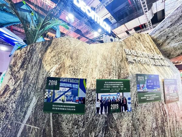 迪卡侬"地球运动场"主题展台 可持续发展是迪卡侬的重要发展战略之一。作为大众运动全产业链企业,迪卡侬打造了覆盖产品设计、生产、运输、零售、使用到再循环全生命周期的可持续价值链。本届进博会,迪卡侬聚焦可持续发展,不仅参展产品100%采用生态设计,而且在多个运动场景中融入了"微环保"知识普及、互动打卡游戏、绿色运动倡议等环节,将多元运动场景与环保理念深度结合。比如,通过骑行点亮绿色地球倡导绿色出行、海洋漂流瓶回收号召资源循环利用、无痕山野知识问答呼吁生态环境保护等,旨在号召大众提升环保意识,在享受运动欢愉的同时身体力行地守护地球运动场。 此外,迪卡侬展台还设置了"致敬进博五周年"成果展,回顾迪卡侬历届参展成果及溢出效应。迪卡侬中国高级副总裁巴学凯(Pascal Bizard)表示,进博会是企业与全球对话的窗口,通过这一资源高度聚合的平台,迪卡侬希望将自身的创新科技和可持续发展理念不断分享、传递给更加广泛的行业内伙伴及消费者,从而产生深入的连接,共同参与到绿色体育建设中来。
