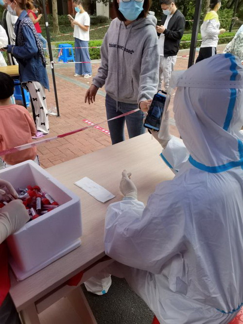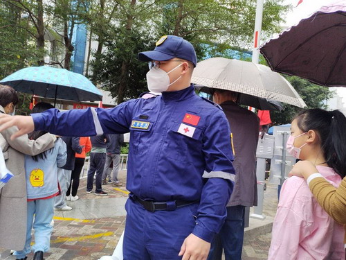 城区收展二部青年志愿者协助维护核酸检测点现场秩序