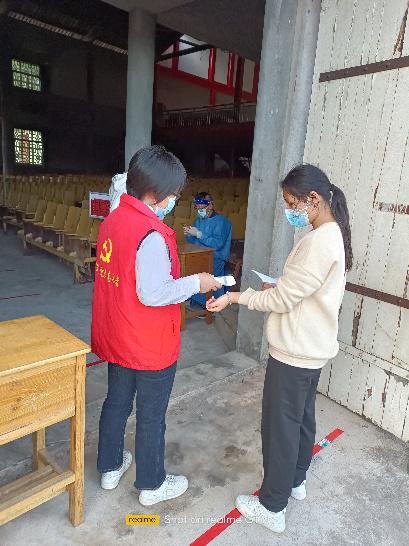 罗源支公司青年志愿者在核酸检测点测温登记信息。