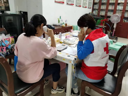 号长带领青年们开展志愿服务,协助社区入户信息登记