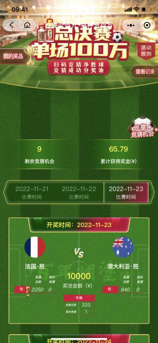 这是来自于百年糊涂酒业在世界杯期间送来的福利——“晚晚6点9,举杯分百万”:世界杯期间购买百年糊涂经典小百年&银世纪指定产品,打开瓶盖扫码,即可参与一百万现金池竞猜世界杯互动活动。不仅有机会赢得丰厚礼品,还有机会瓜分百万奖金。