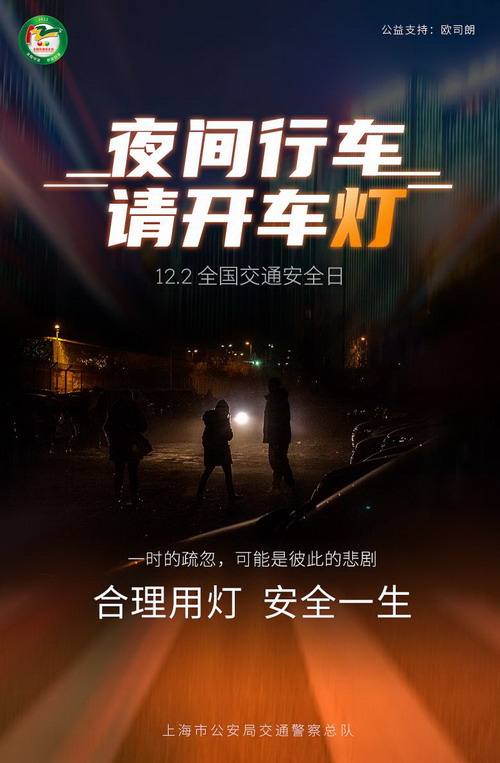 (中国,上海-2022年12月02日)今天,是第11个“全国交通安全日”,交通安全与我们的日常生活息息相关,安全良好的交通环境需要大家共同打造。本个“全国交通安全日”欧司朗联合上海交警总队围绕“合理用灯,安全一生”,向广大车主进一步提示夜间行车隐患,助力车主安全出行。 随着大家的安全意识不断提高,安全出行、文明出行的理念被更多的人认同、履行,但在相较于白天不安全因素剧增的夜间,行车时的疏忽行为正酝酿着巨大的安全隐患! #夜间行车,请开车灯