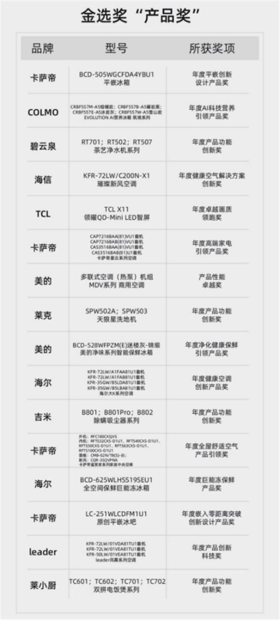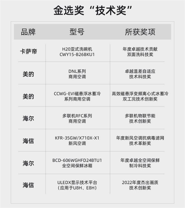 2022年12月9日,由知电主办、中国家用电器研究院指导、GFK数据支持的第八届中国智慧家庭大会暨金选奖颁奖盛典,在北京以线上直播的方式隆重召开。 此次大会以“缔造不凡”为主题,汇聚卡萨帝、美的、海信、TCL、海尔、莱克、COLMO、碧云泉、Leader、吉米、莱小厨等近百位知名品牌的企业代表、媒体老师以及科技爱好者共襄盛举。 着眼当下,消费互联网如火如荼,产业互联网呼啸而来,新零售拓展、5G网络突飞猛进,让产品已经成为了价值唯一的语言。而科技家电行业的创造者们,旖旎在万山之巅,承载着星辰大海,用专注和信仰,为大众,为社会,为世界缔造了不凡的成果。此次的直播中,在大家的共同见证下,2022年金选奖的评选结果也正式揭晓,为2022年所有科技家电企业的进取和努力结果做了完美的点评和收关,并向全球的消费者展现了中国科技家电不同凡响的技术与产品创新力量。 (中国家用电器研究院班子成员、总工程师徐鸿致辞) 中国家用电器研究院班子成员、总工程师徐鸿先生对本次大会进行了开场致辞。 徐总表示:以互联网为代表的人类竞争正迅速集中于“脑力”的竞争,”5G+AI”、大数据以及物联网技术正在不断突破,为智能时代的到来打下了坚实的基础,人们也从早期的“感知智能”迈向了“认知智能”。知电通过八年的产品测试和评价,在科技产品的评测中取得了较大的进展,被越来越多的消费者所信赖。推出的金选奖得到行业越来越多企业的申报和参与,但是评选的标准始终如一的严格,只有性能最好的产品才可以获奖,希望这些产品继续为大众,为行业,为世界缔造不凡,拓路前行,领跑未来。 消费下行期,技术产品的快速迭代才能促使市场回暖 能源问题让全球通胀加速,这也使得消费者信心受挫,导致全球技术类消费电子2022年前三季度明显下滑。不过对于中国市场来说,高端科技家电产品的替换升级却悄然推动市场的加速。 此次大会上,全球第五大市场研究公司GFK的中国家电事业部总监蔡凌先生分享了2022年的中国科技家电发展情况的洞察。 (GFK中国家电事业部总监蔡凌发言) 蔡凌先生分享:疫情改变了中国消费者的消费观,尤其是一二线城市的高收入人群,消费保守化的趋势尤为明显。他们在选择产品的时候,会更注重“健康”、“品质”、“绿色”、“智能”的标签,能够提升生活品质的家电,具有健康属性的产品,将在未来市场竞争中拥有更大的优势。同时蔡凌先生也表示,企业的长期创新,需要瞄准消费者使用体验的升级。从性能、使用便利性入手,可以带来长期价值。 “智能家电”甚嚣尘上,“新家电”的未来何去何从? 进入2022年,我们发现链接在加速,硬件科技产品演化在加速,而新技术的落地更让产品焕发生机。 来自北京交通广播电台《联e会》的主持人徐冉在活动现场发起了TechTalk,邀请五位嘉宾对于2022年的优质技术和产品进行了深入的探讨。 (活动现场探讨) 知电CEO梅晓春介绍,当下的家电科技产品,主要是朝向绿色、智能和健康三个大方向去做技术突破,其中智能家电对于大众生活的舒适性和便捷性提升非常明显,成为了消费者的首选。 (现场连线) 中国家用电器研究院总工程师徐鸿认为,在如今以“用产品满足消费需求”为核心的,产品为王时代,技术能力和产品能力在市场发展中的权重越来越高。我国已经从之前相对落后、相对不发达的工业体系、制造业体系,进入了一个比较强大的工业体系,即更加个性化、差异化的产品设计,更加智能化、数字化的制造过程,更加高效率、低成本的制造与服务的一体化,更加精细化、科学化的企业管理,更加一体化、全球化的标准体系,将支持中国制造升级为中国“智造+制造”。 在TechTalk环节,知电的工程师们详细的展示了,通过长期测试和技术研究发现的2022年值得关注的优秀技术和产品。在白色家电领域,来自于卡萨帝、美的、海信、COLMO、海尔、Leader都是瞄准了健康升级去发力。而显示领域中,国内的TCL和海信都凭借自己不凡的技术研发实力,促进了显示品类的技术迭代。生活电器领域与商用领域中,莱克、碧云泉、吉米、莱小厨、美的商用空调、海尔商用空调等企业分别在品质升级和绿色环保领域中,瞄准了用户长期使用的价值,展开了品质和绿色环保升级的积极探索。 2022年,新产品层出不穷,企业用共振、用归位、用创新、用好产品,为未来注入全新生命力。而第八届中国智慧家庭大会暨金选奖颁奖盛典的活动以专业、权威和公正的评选方式,从技术、产品、卓越等多个维度,让行业内优质的品牌、优秀的产品、先进的技术、卓越的产品力成为了当下缔造不凡最好的展示。 本次荣获“金选奖”的品牌主要有卡萨帝、美的、海信、TCL、海尔、莱克、COLMO、碧云泉、Leader、吉米、莱小厨,产品涵盖冰箱、电视、空调、中央空调、净水机、洗碗机、洗地机、除螨仪、电饭煲等各大科技品类。(具体产品型号见文末附表)。 金选奖产品的诞生,为消费者提供了好的选择和指导。 中国首席商业资讯门户;更多内容请关注中国商业网各频道、栏目资讯。 免责声明:凡未注明来自本站的稿件和图片作品,系转载自其它网站,转载目的在于信息传递,并不代表本站赞同其观点和对其真实性负责 。 |